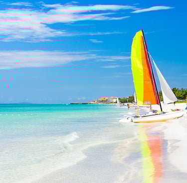2. Varadero Known as one of the most beautiful beaches in the Caribbean, Varadero boasts over 20 kilometers of powdery white sand and crystal-clear turquoise waters. It is a world-renowned resort town perfect for relaxing, swimming, and water sports.